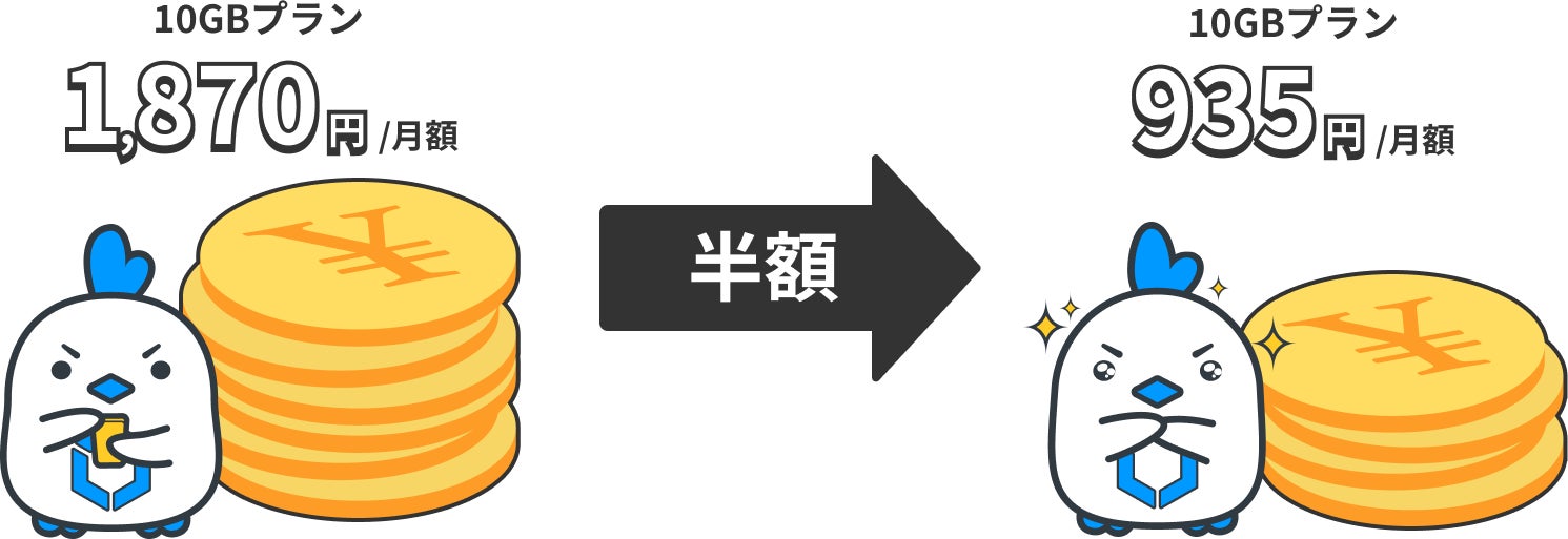 新規申し込み費用は最大11,000円割引され、全プランの6ヶ月分の料金が半額になります。