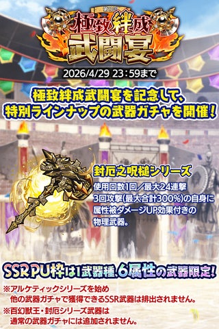 また、「封厄之呪槌」シリーズ武器限定の武器ガチャも登場する。