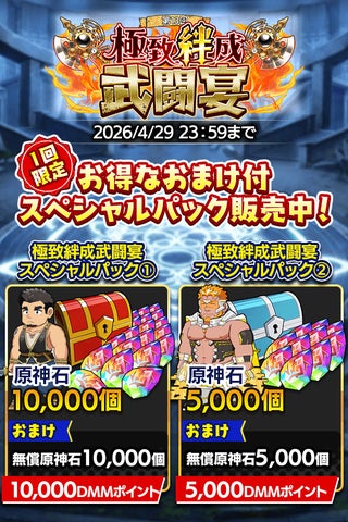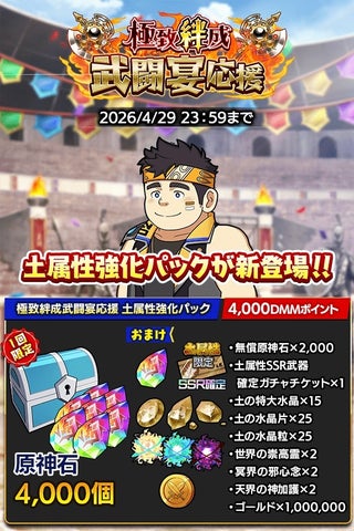 期間限定パックとして、お得な原神石パック、育成パック、土属性強化パックも販売される。