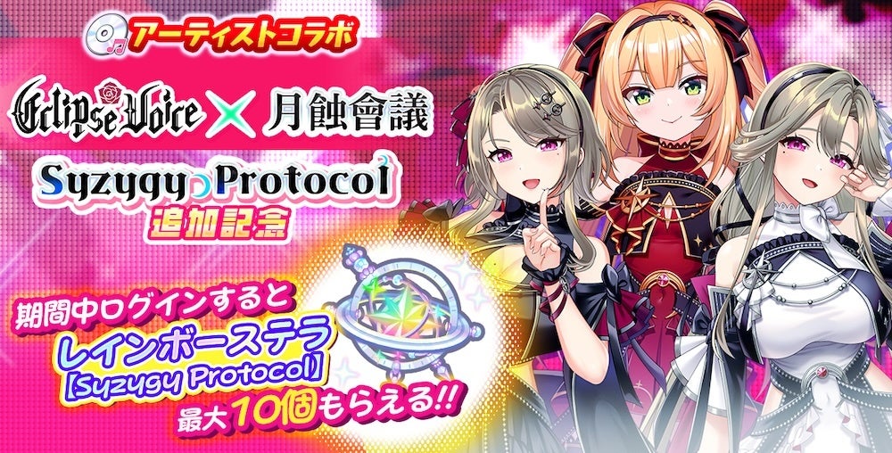 DMM GAMESが提供する放置型アイドル育成RPG『STELLAR IDOL PROJECT』にて、新企画「アーティストコラボ」の第3弾として、月蝕會議による書き下ろし楽曲「Syzygy Protocol(シジジープロトコル)」が公開された。
