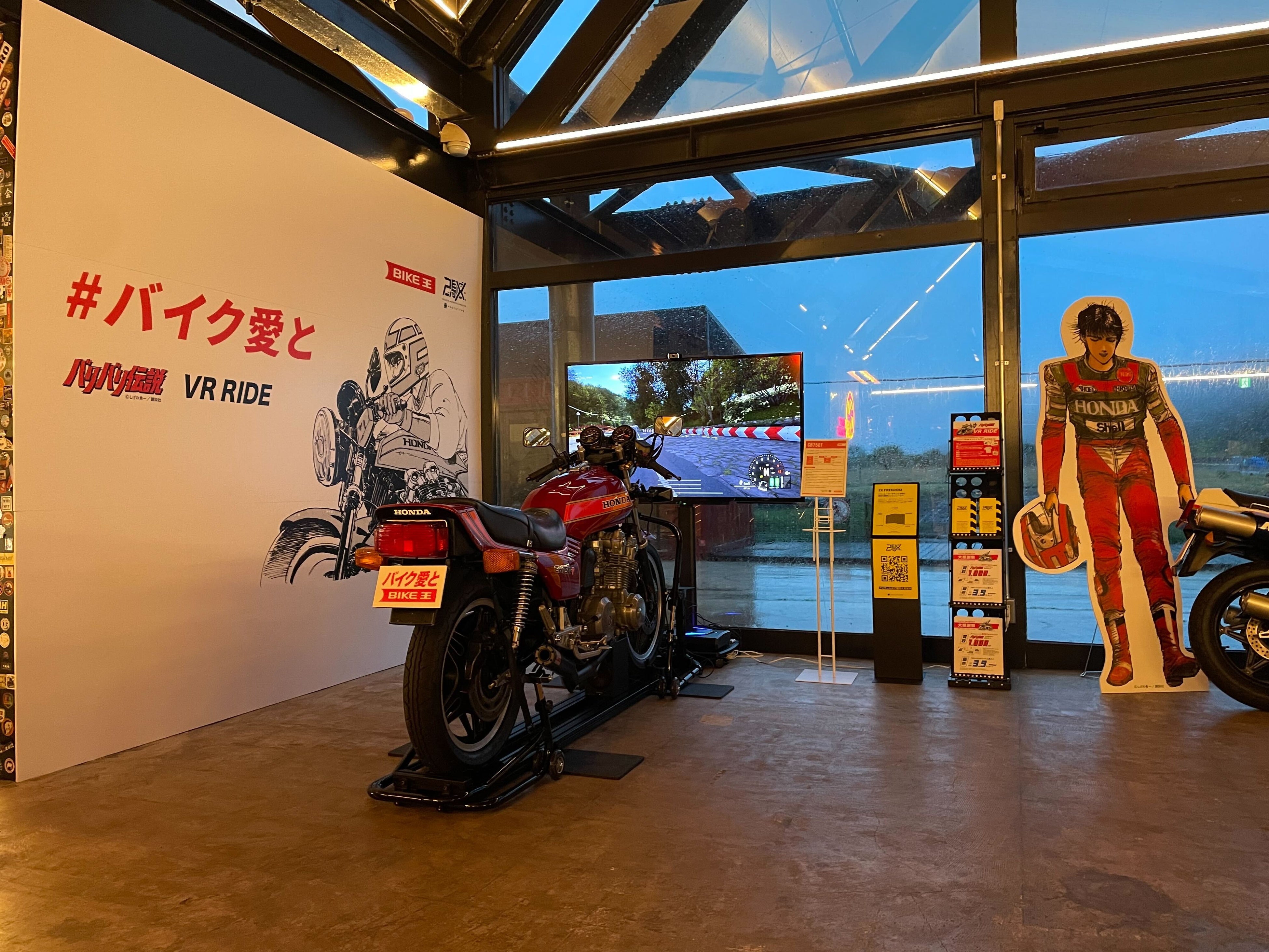 • 「バリバリ伝説」のCB750Fに跨り、VRで走行体験ができる。