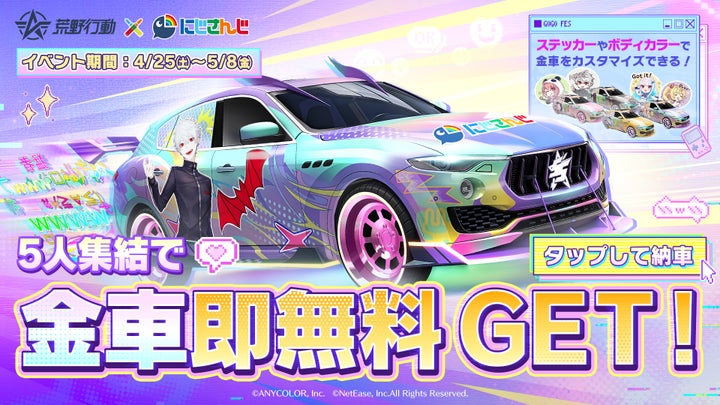NetEase Gamesの『荒野行動』は、2026年4月25日(土)から5月8日(金)まで、VTuber/バーチャルライバーグループ「にじさんじ」とのコラボイベント第4弾を開催する。
