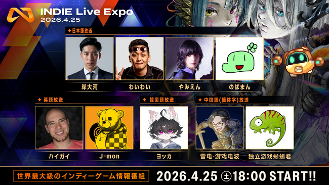 - 「INDIE Live Expo 2026.4.25」にて200以上のインディーゲームを紹介、うち9作品が世界初公開。