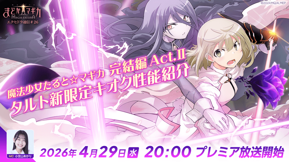 - 『魔法少女まどか☆マギカ Magia Exedra』の公式番組「エクセドラ通信#26」が4月29日20時にプレミア公開。