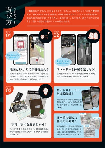 参加者は、ARや位置情報を活用し、日本橋の名所を巡りながら事件の謎を解きます。