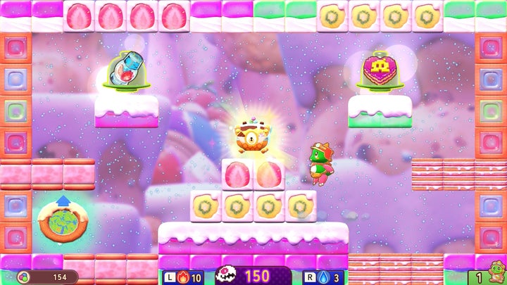 1986年に登場した『バブルボブル』シリーズは今年で40周年を迎え、本作はシリーズ初のステップアップバブルボブルとして、ダンジョン探索のワクワク感を高めている。