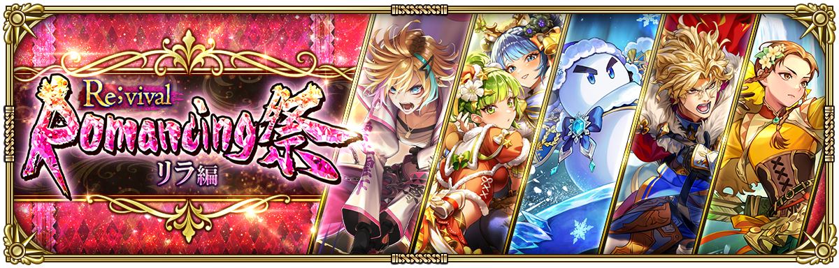 また、「Romancing祭 ドラゴンクエストタクト コラボ祭 カタリナ編」「Romancing祭 ドラゴンクエストタクト コラボ祭 ノエル編」、復刻ガチャ「Romancing祭Re;vival リラ編」が開催されます。