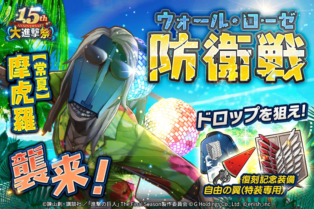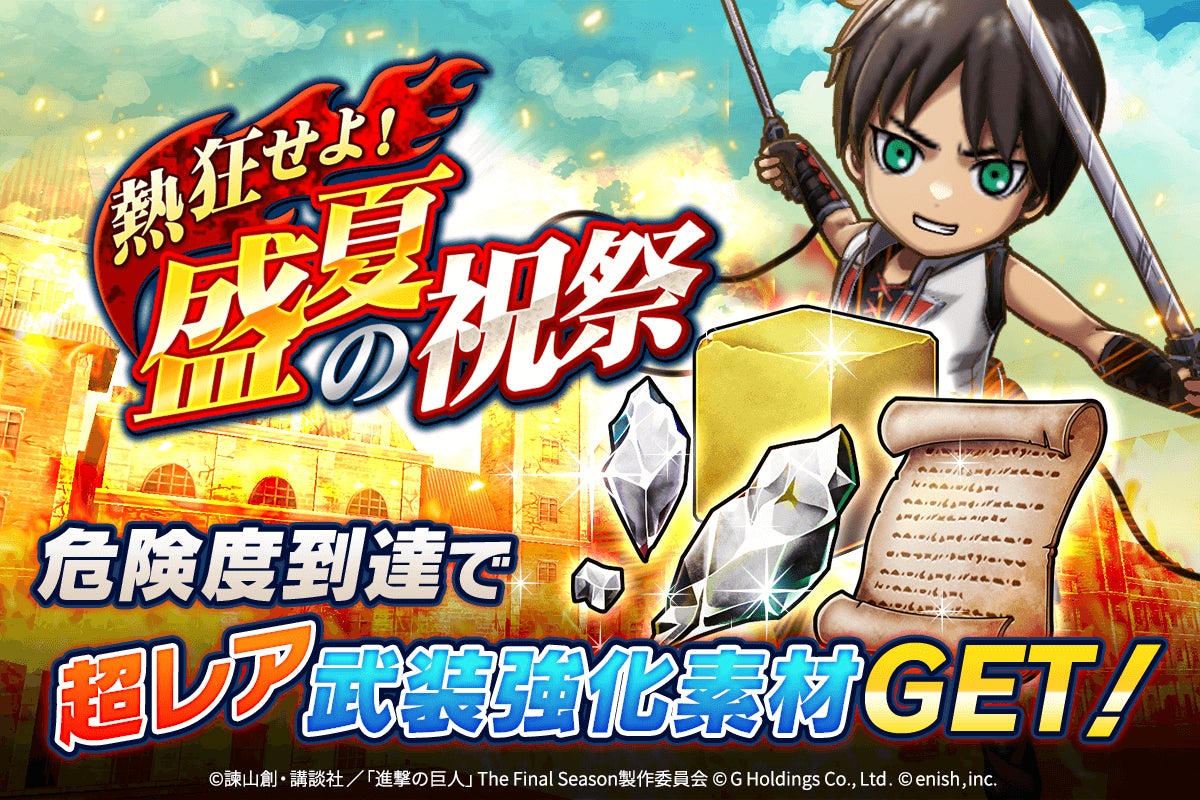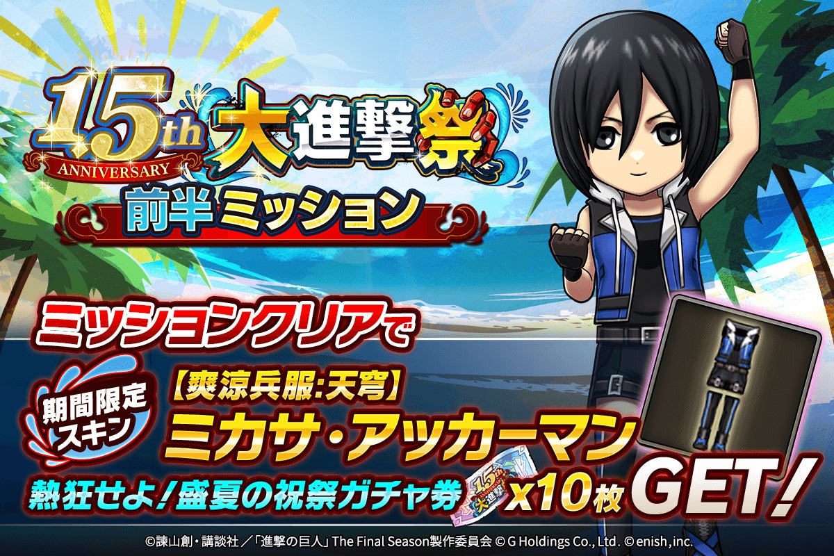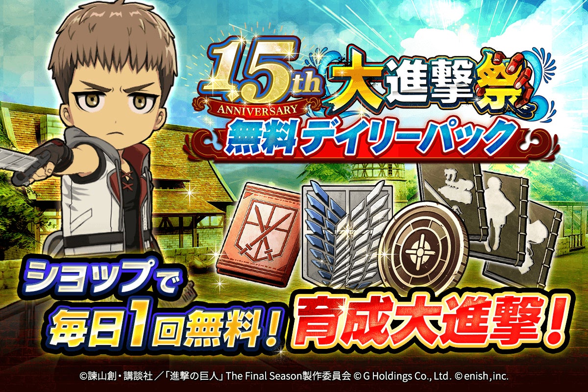 株式会社enishは、スマートフォンゲーム「進撃の巨人Brave Order」の1.5周年を祝して大進撃祭を開催します。