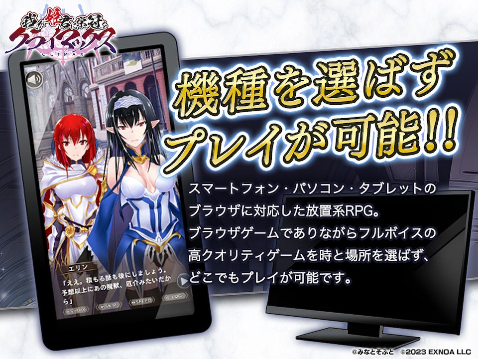 この機会にぜひ挑戦してみてください!『我が姫君に栄冠をクライマックス』は放置系RPGで、みなとそふと監修の新規シナリオが楽しめます。