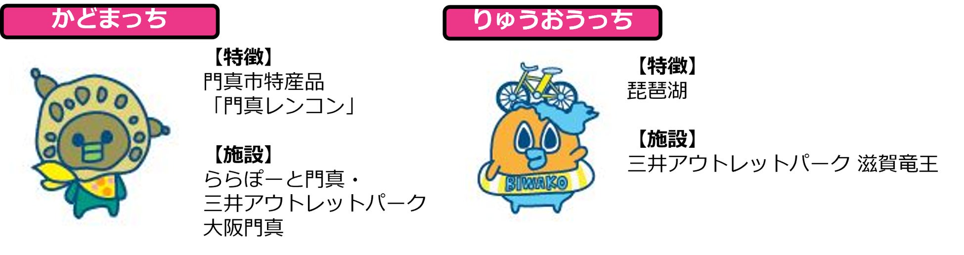 - ららぽーと門真、三井アウトレットパーク 大阪門真、ららぽーと甲子園、和泉、EXPOCITY、堺、アウトレットパーク滋賀竜王