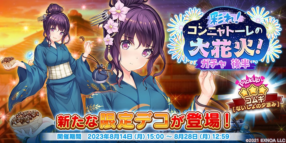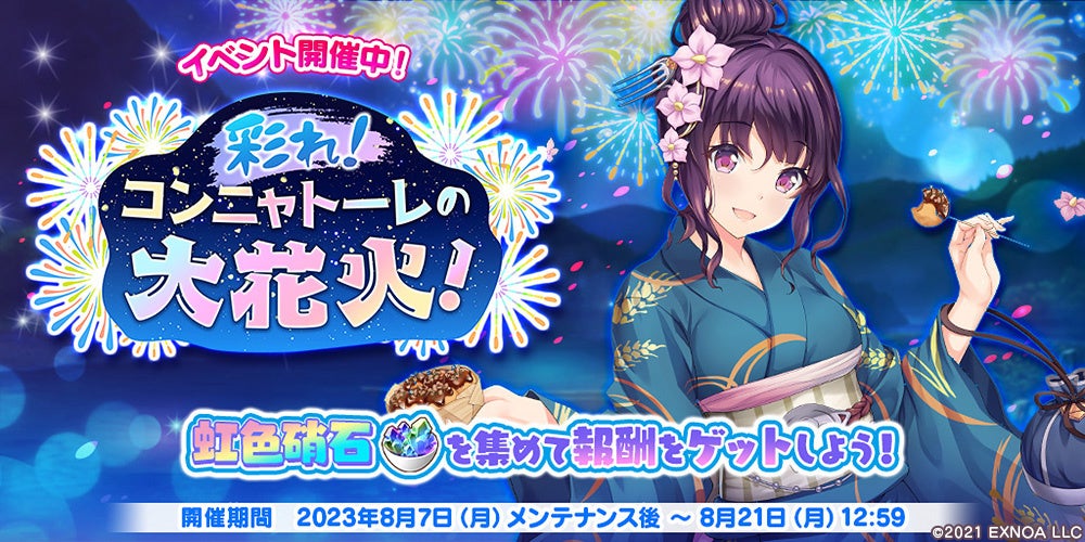 - DMM GAMESのストーリーイベント「彩れ!コンニャトーレの大花火!」の後半と新ピックアップガチャが開催中
