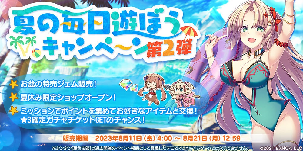- 夏の毎日遊ぼうキャンペーンも開催中で、キャンペーンポイントを集めて豪華アイテムと交換可能