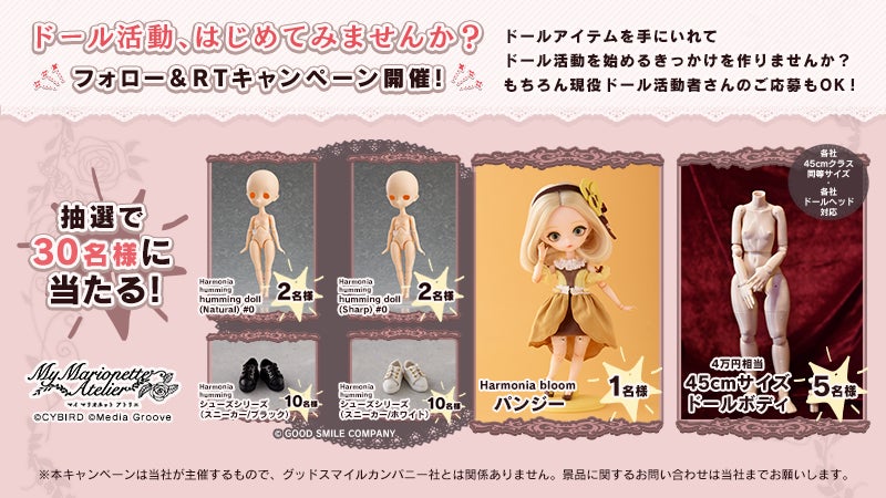 さらに、公式Twitterのフォロー&RTキャンペーンでは、抽選で30名にドール素体などの景品が贈られます。