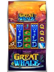 さらに、クジラ図柄がリール上に埋まると次のゲームの配当が2倍になる特別なWILDリールが出現します。