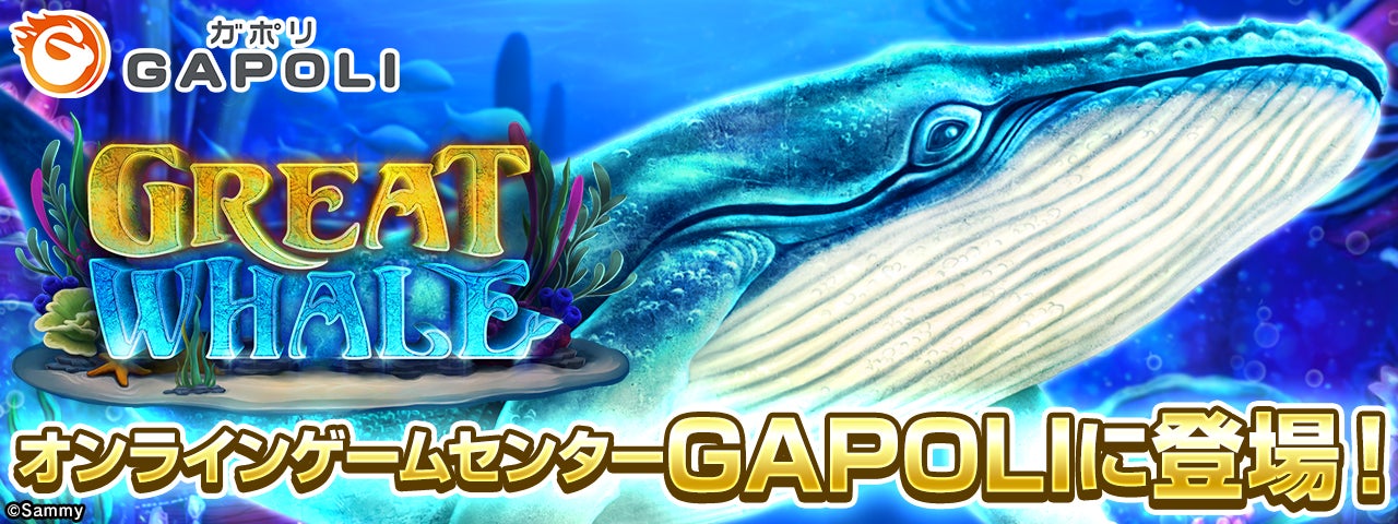 2023年8月15日(火)から、株式会社サミーネットワークスが運営するオンラインゲームセンター『GAPOLI(ガポリ)』で、サミー株式会社のオリジナルビデオスロット「GREAT WHALE」が配信されます。