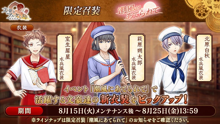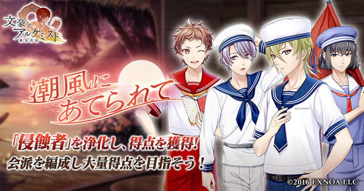 - DMM GAMESの「文豪とアルケミスト」でイベント『調査任務「潮風にあてられて」』と限定召装『潮風にあてられて』を開催