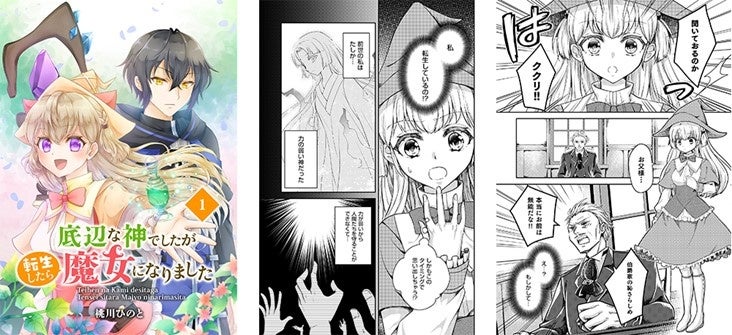 そして『底辺な神でしたが転生したら魔女になりました』は、前世で力の弱い神だった少女ククリが神力を持つ伯爵令嬢として生まれ変わり、伯爵家から追放されるというストーリーです。