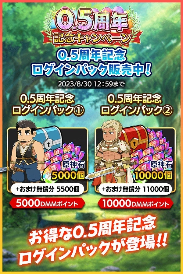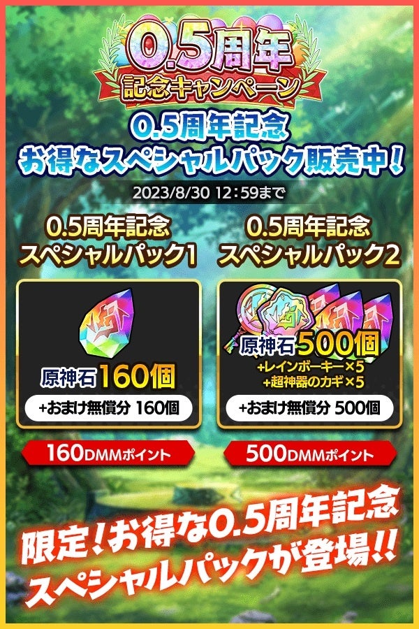 0.5周年、メインストーリー7章、記念キャンペーン、ログイン、連ガチャ、チケット、アイテム、新キャラクター、0.5周年魂友セレクトガチャ、神器セレクトガチャ、記念ログインパック、スペシャルパック、異世界、RPG、PC、スマートフォン、公式サイト、SNSアカウント