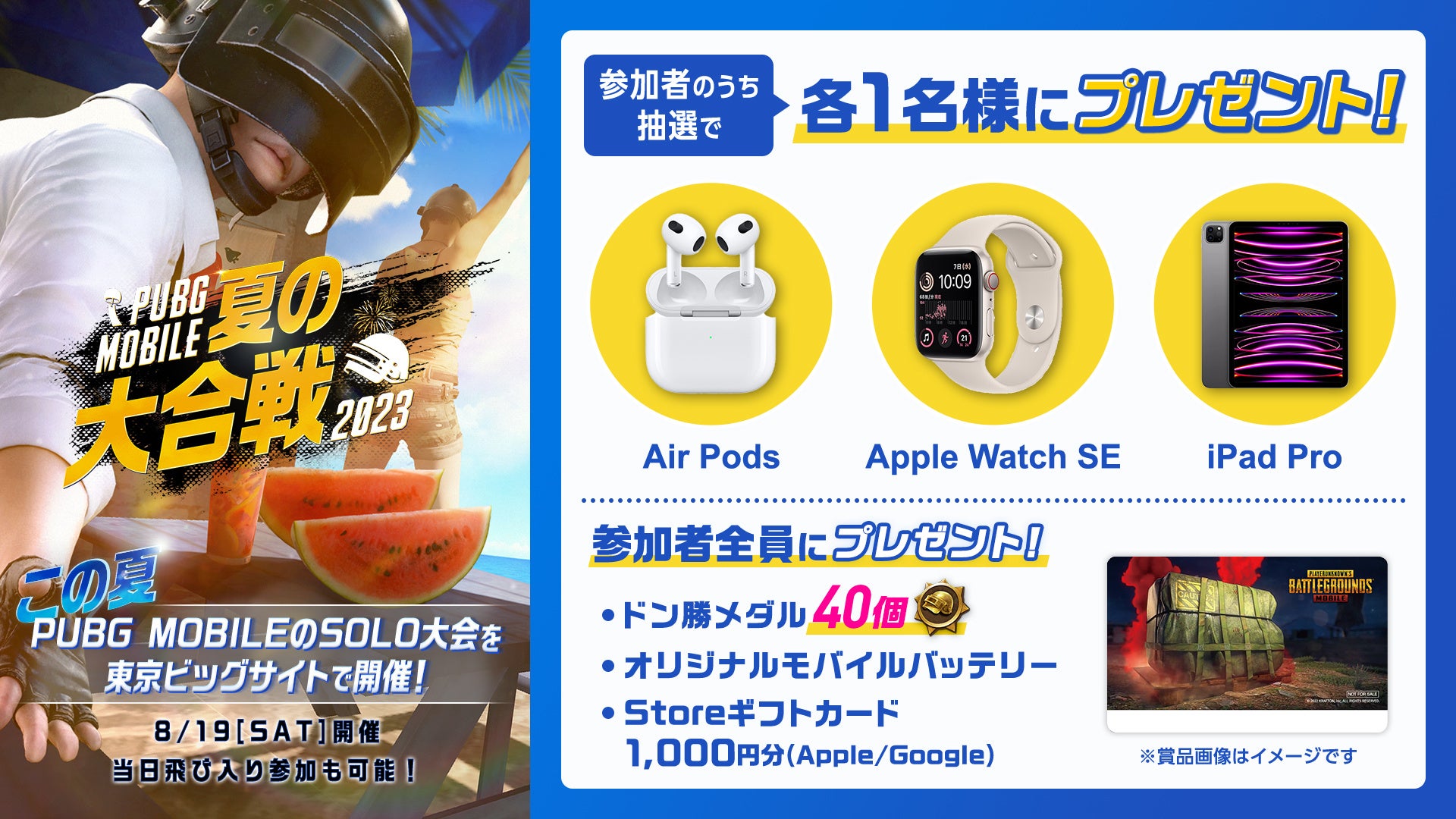 - PUBG MOBILE、iPad Pro、Air Pods、Apple Watch SE