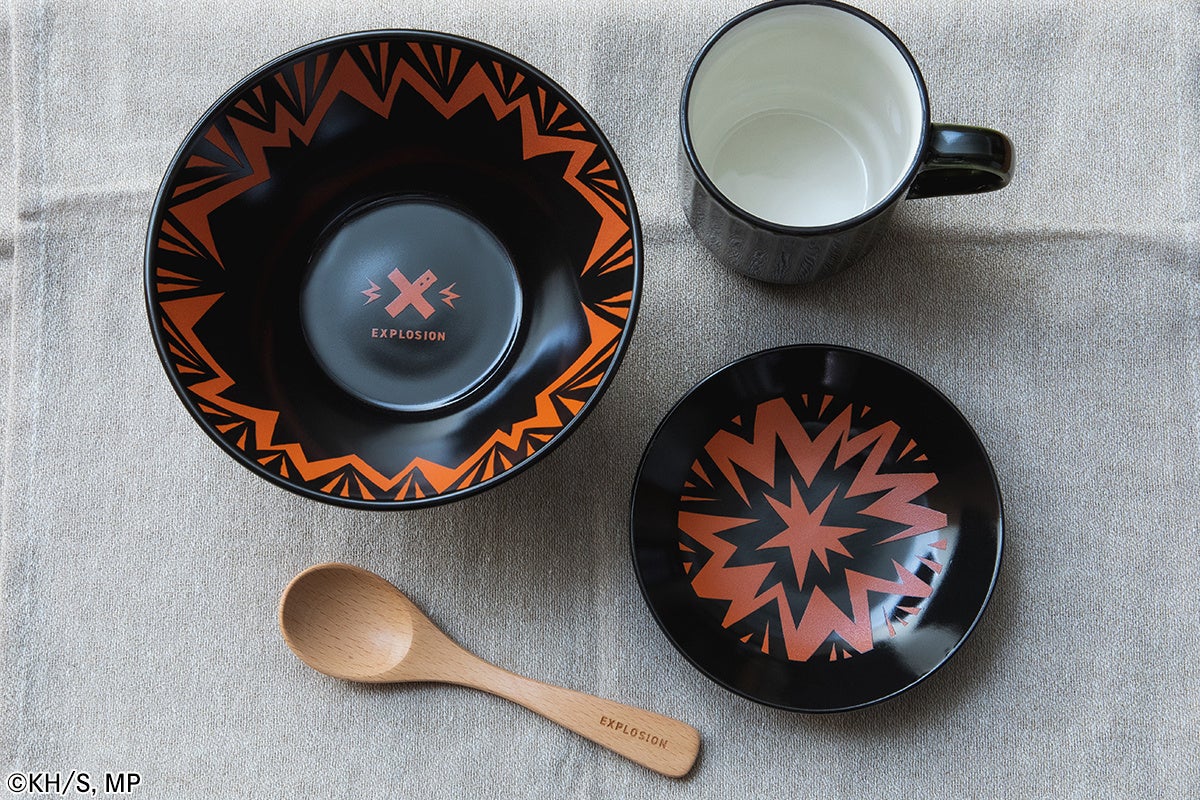 マグカップには「PLUS ULTRA」、木製スプーンには「EXPLOSION」の文字を刻印。