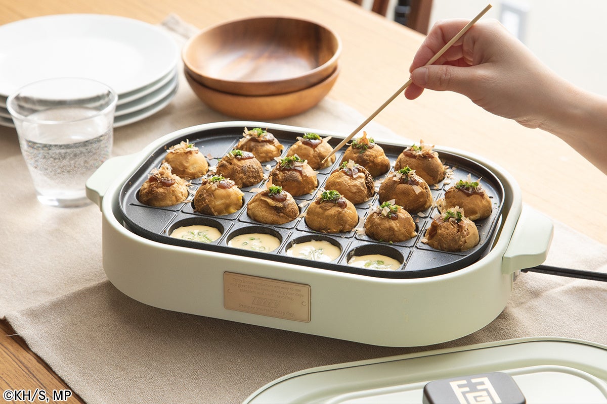 ファットガムをイメージした「たこ」、誕生日に含まれる数字の「8」、「たこ焼き」をポップにデザインしたコンパクトホットプレートです。