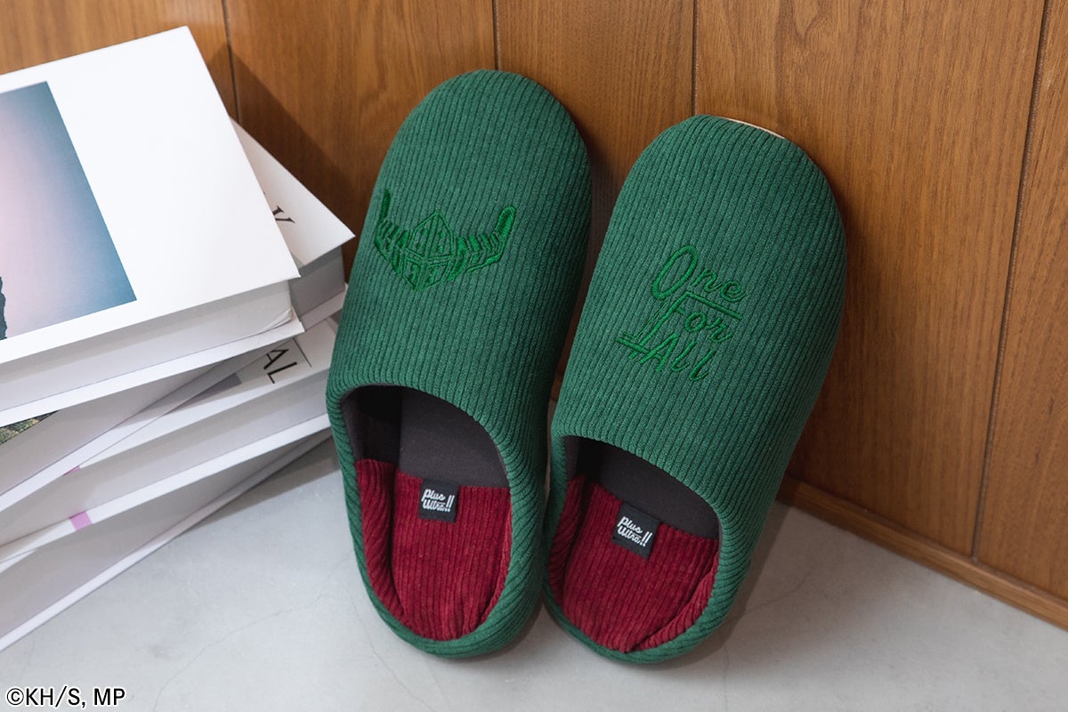 緑谷出久をイメージしたグリーン×レッドのルームシューズ。