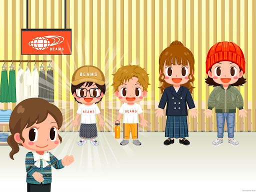 このゲームでは、洋服作りや着せ替え体験ができ、ビームスの店舗をモチーフにした擬似店舗内でセレクトショップの社会体験が楽しめます。