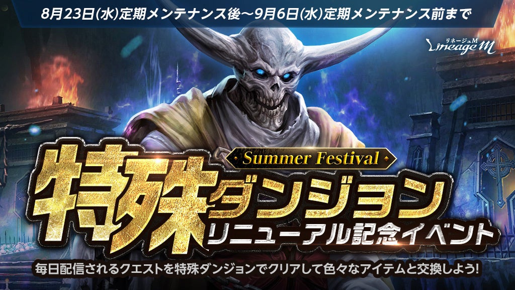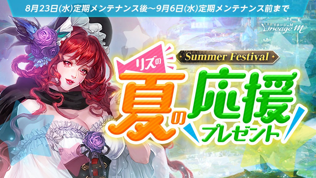 エヌ・シー・ジャパンは、PCオンラインRPG「リネージュ」のモバイル版タイトル『Lineage M』において、2023年8月23日から「リズの夏の応援プレゼント」と「特殊ダンジョンリニューアル記念イベント」を開催することを発表しました。