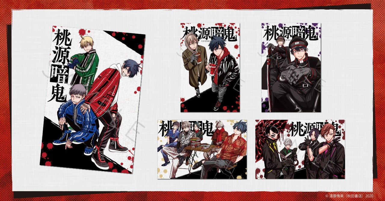 期間中、対象店舗+通販で「桃源暗鬼」関連のグッズを購入・予約すると、特製ポストカード(全5種)がプレゼントされます。