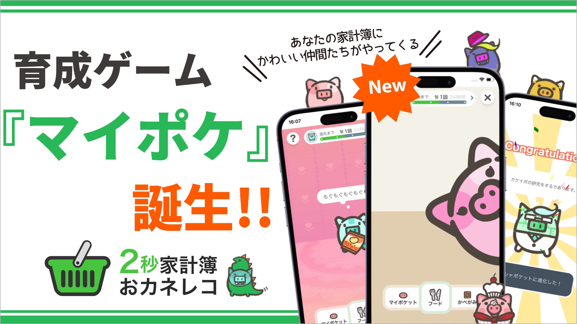 スマートアイデア株式会社は、家計簿アプリ「2秒家計簿おカネレコ」に育成シミュレーションゲーム機能『マイポケ』を追加しました。