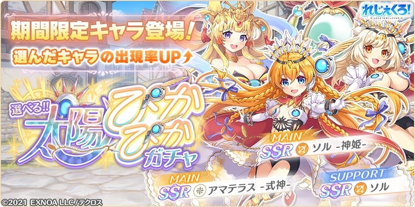 期間限定で神姫プロジェクトの「ソル」とあやかしランブル!の「アマテラス」が登場し、れじぇくろ!の「ソル」も特別な衣装に変身します。