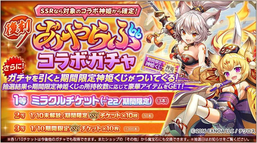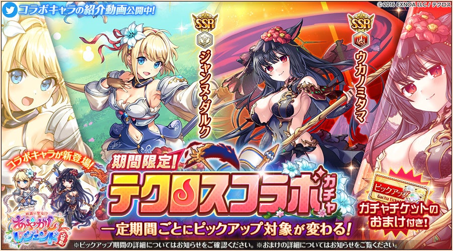 - DMM GAMESの『神姫PROJECT』が『れじぇくろ!』と『あやかしランブル!』とのコラボキャンペーン「テクロス感謝祭」を開催