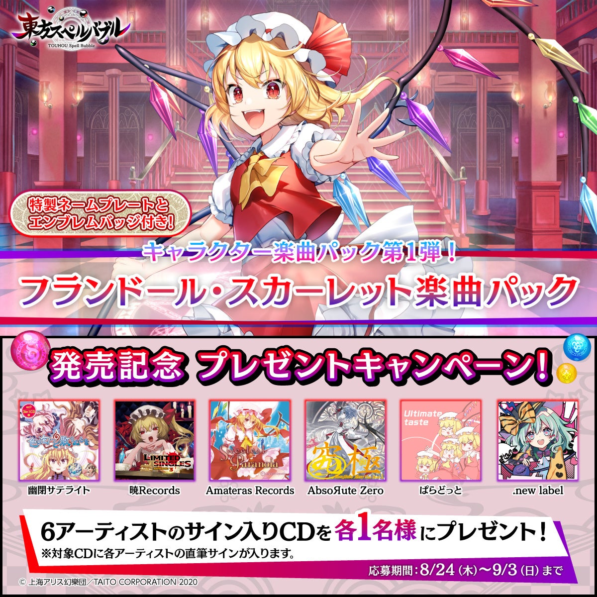株式会社タイトーは、本日8月24日よりNintendo Switch™ダウンロード専用ソフト『東方スペルバブル』の追加ダウンロードコンテンツ「フランドール・スカーレット楽曲パック」の配信を開始しました。