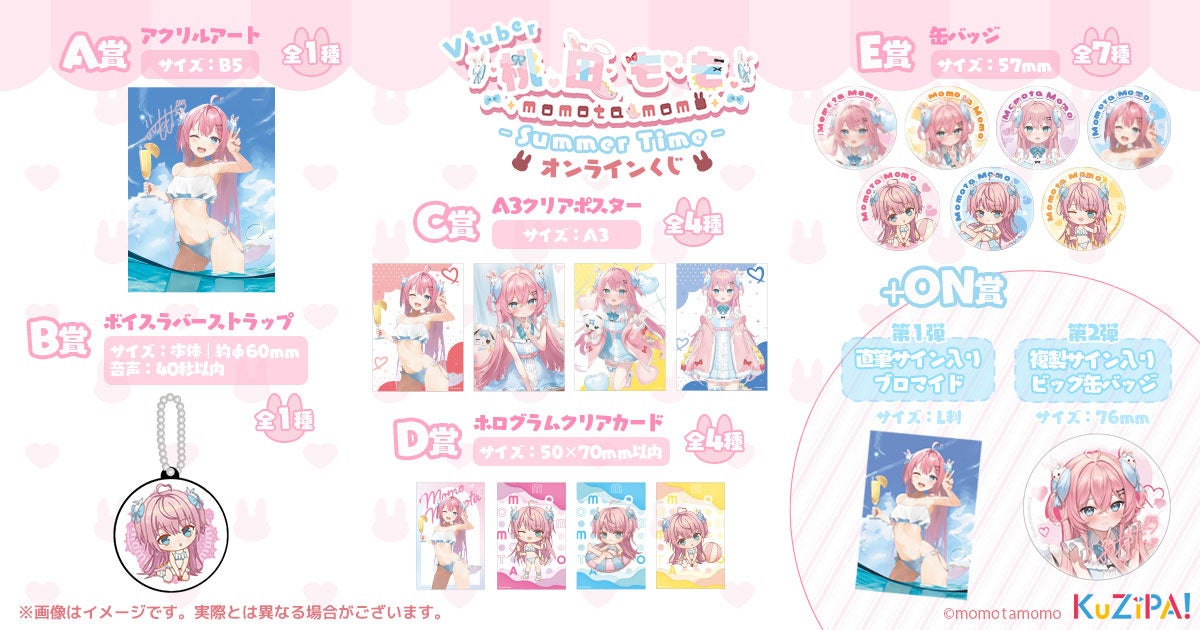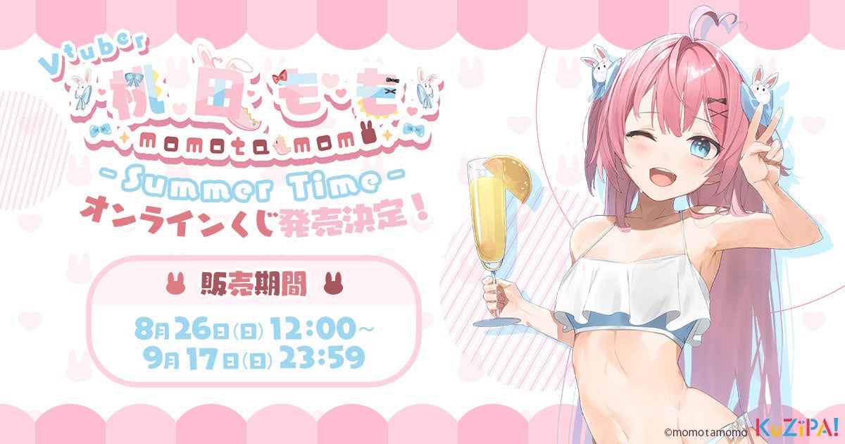 株式会社HIKEは、オンラインくじサービス「KuZiPA!」にて、Vtuber「桃田もも」の夏らしい水着姿のイラストを使ったオンラインくじを8月26日から販売します。