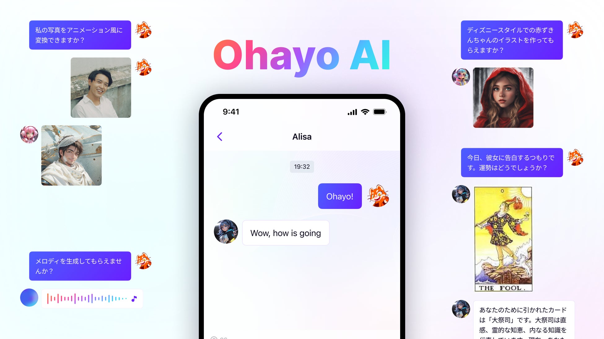 「Ohayo AI」はマルチモーダルAIエージェントであり、AI、SNS、クリエーション機能を組み合わせています。