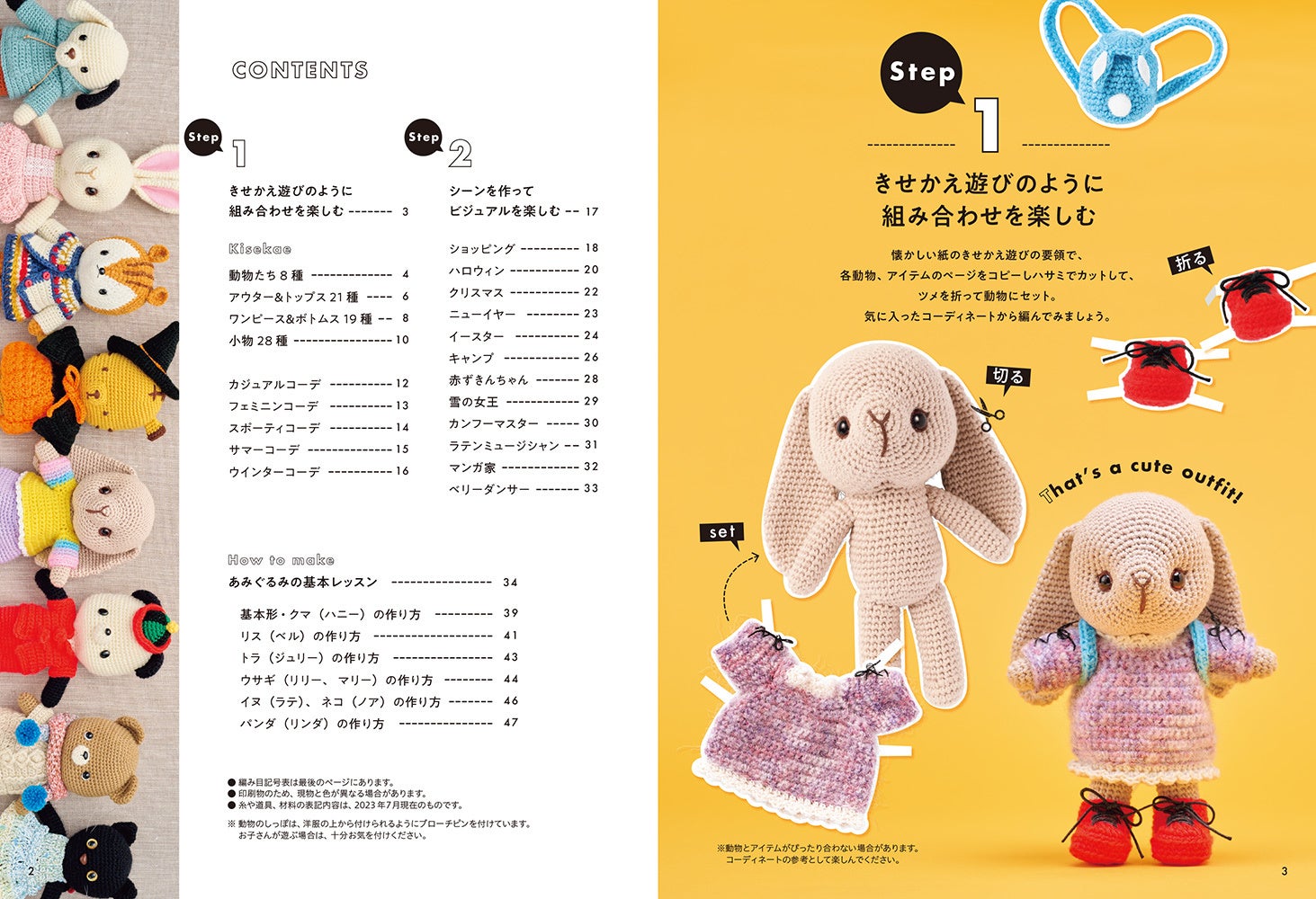 この本は、子ども向けのかわいい動物のあみぐるみ作りと、季節やイベントに合わせたきせかえアイテムの提案をしています。