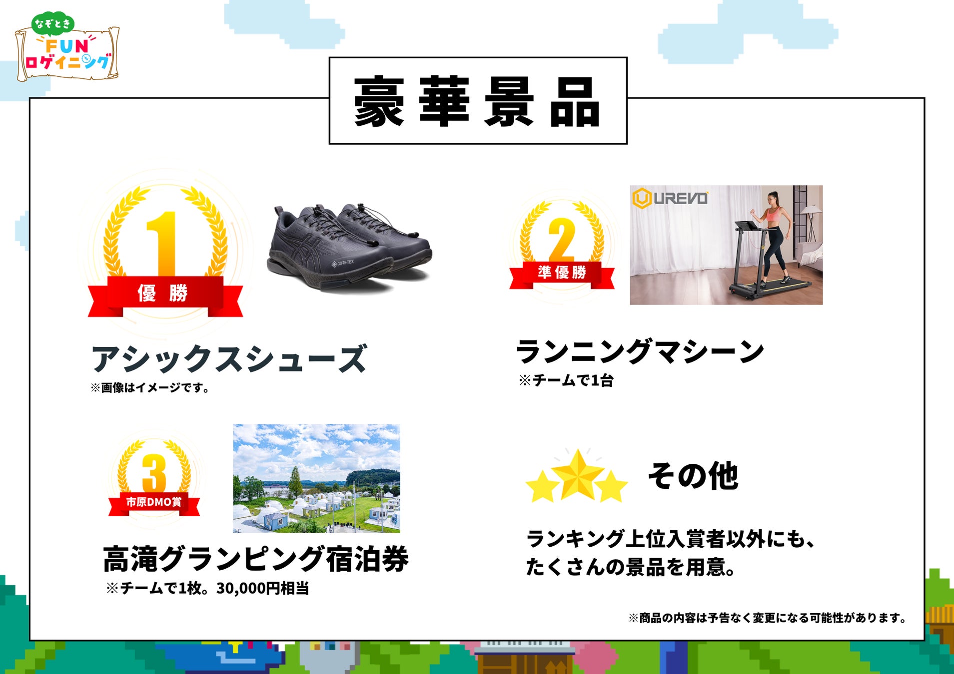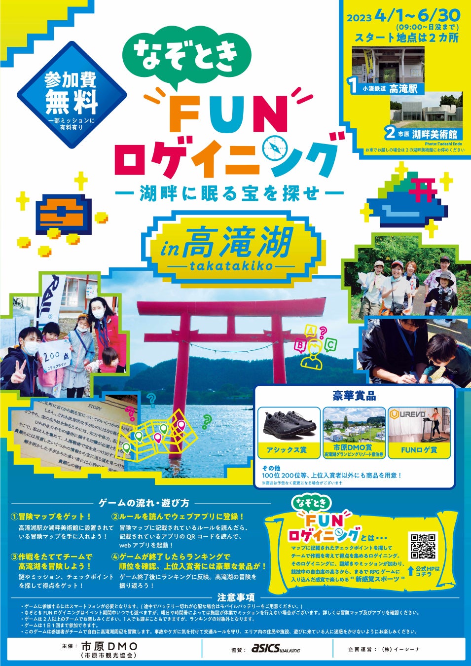 - 1. 2023年4月から千葉県市原市高滝湖で、リアル版RPG『なぞときFUNロゲイニング』の常設型イベントが3か月間限定で開催される。