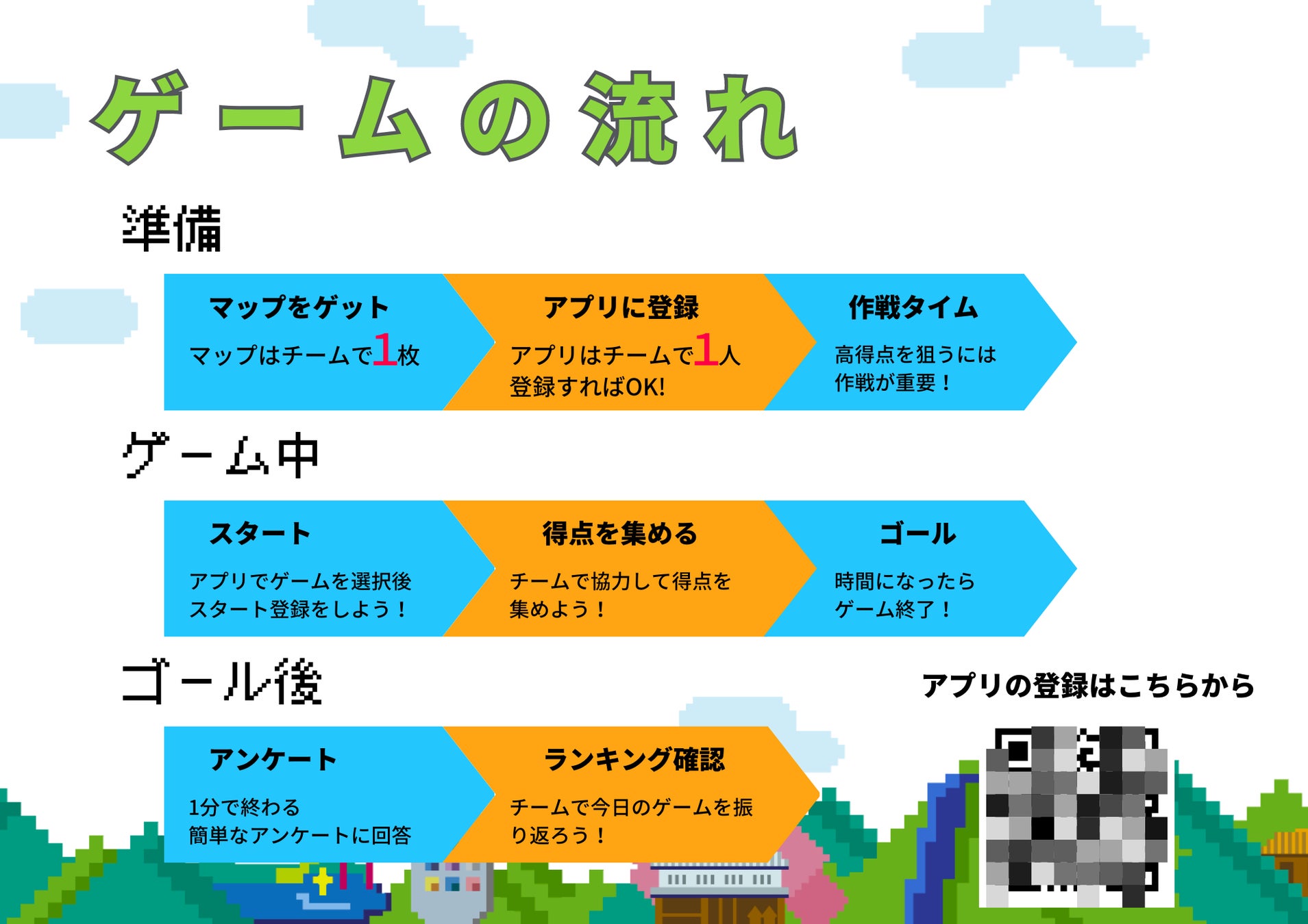 - 2. 参加は無料で、自社開発したアプリを使ってスポットを回り、謎解きやミッションをクリアして得点を稼ぐ。