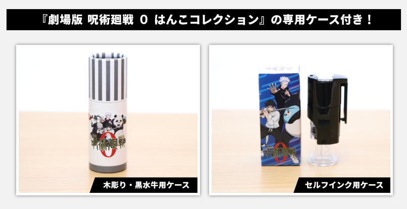 このはんこは、人気アニメ『劇場版 呪術廻戦 0』に登場するキャラクターに、好きな名前を入れて作れるオーダーメイドのもので、TVアニメ第一期をテーマにした第一弾に続く「呪術廻戦」コラボはんこの第二弾となる。