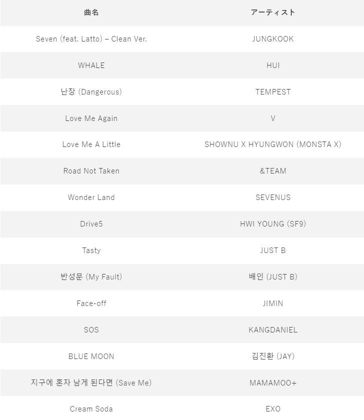 上位15曲は「Spotify」の公式プレイリストで聴くことができます。