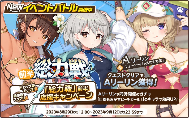 - 総力戦イベント、限定新キャラPickUPガチャ、ビーチガール