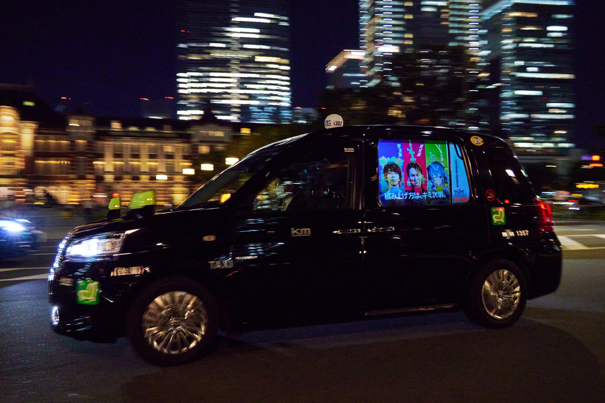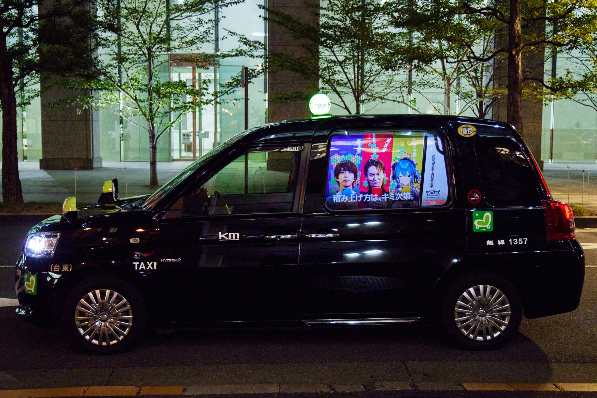 - タクシーの車窓には狩野英孝さんはじめしゃちょーさん星街すいせいさんのキービジュアルがデザインされ、プレイスタイルを表現する