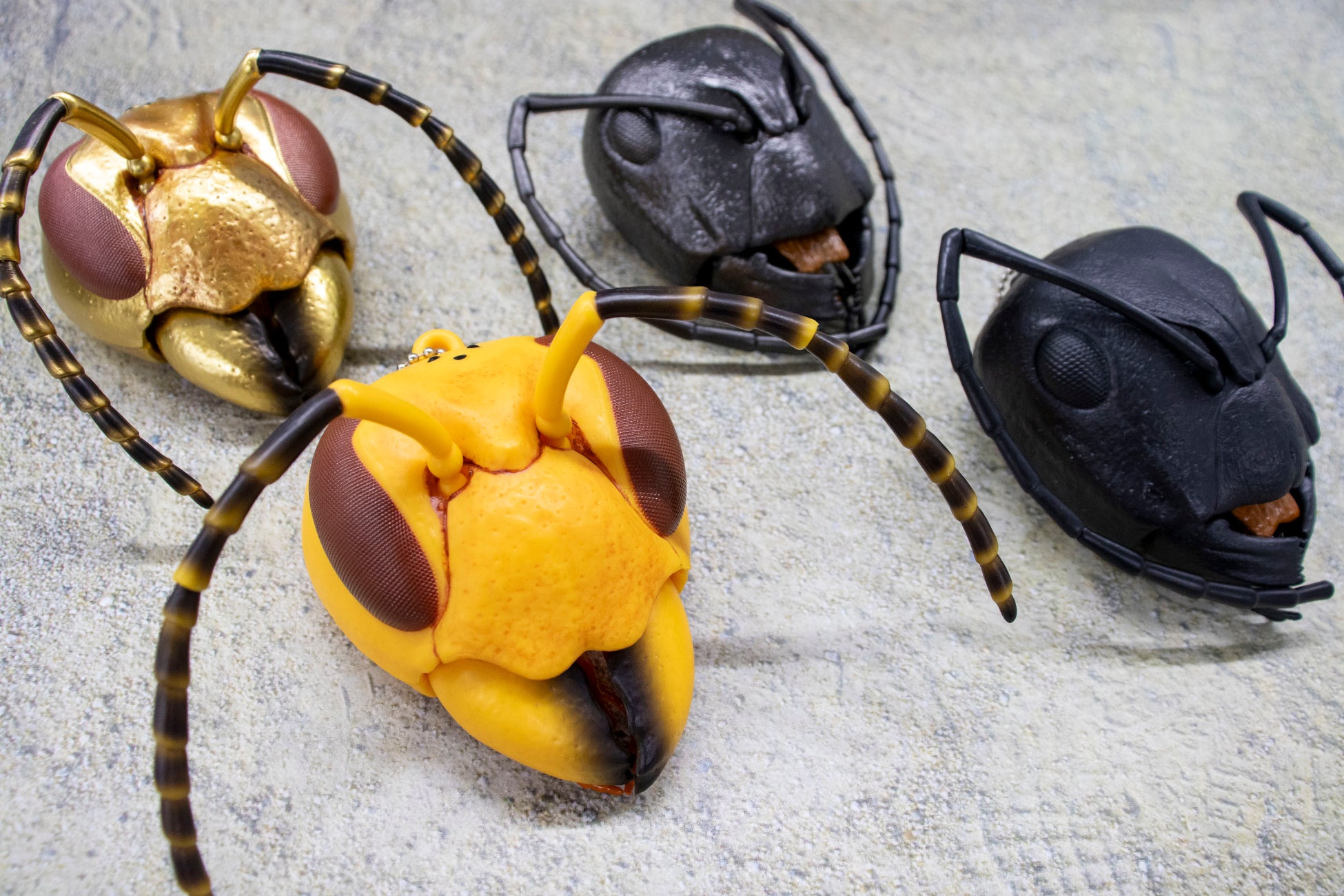 この商品は、アリとハチの顔を100倍ズームしたリアルなデザインで、通常版とメタリック版の2種類が用意されています。