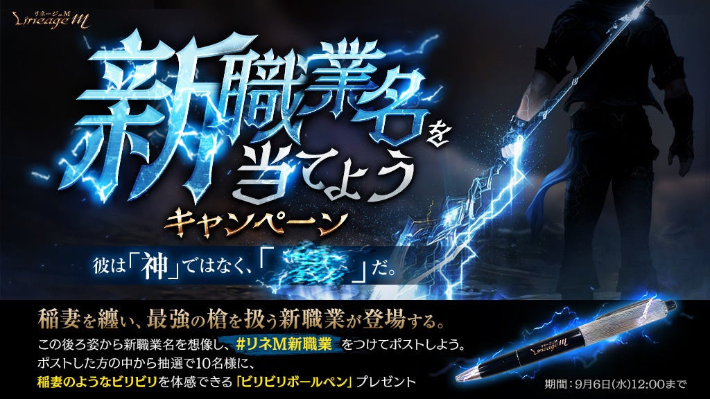 - 新職業、稲妻を纏い最強の槍を扱う新職業、新職業名を予想するキャンペーン、イベント、スマートフォンMMORPG、職業、戦闘システム、取引所、ネットサービス・アプリ、スマートフォンアプリ、スマートフォンゲーム