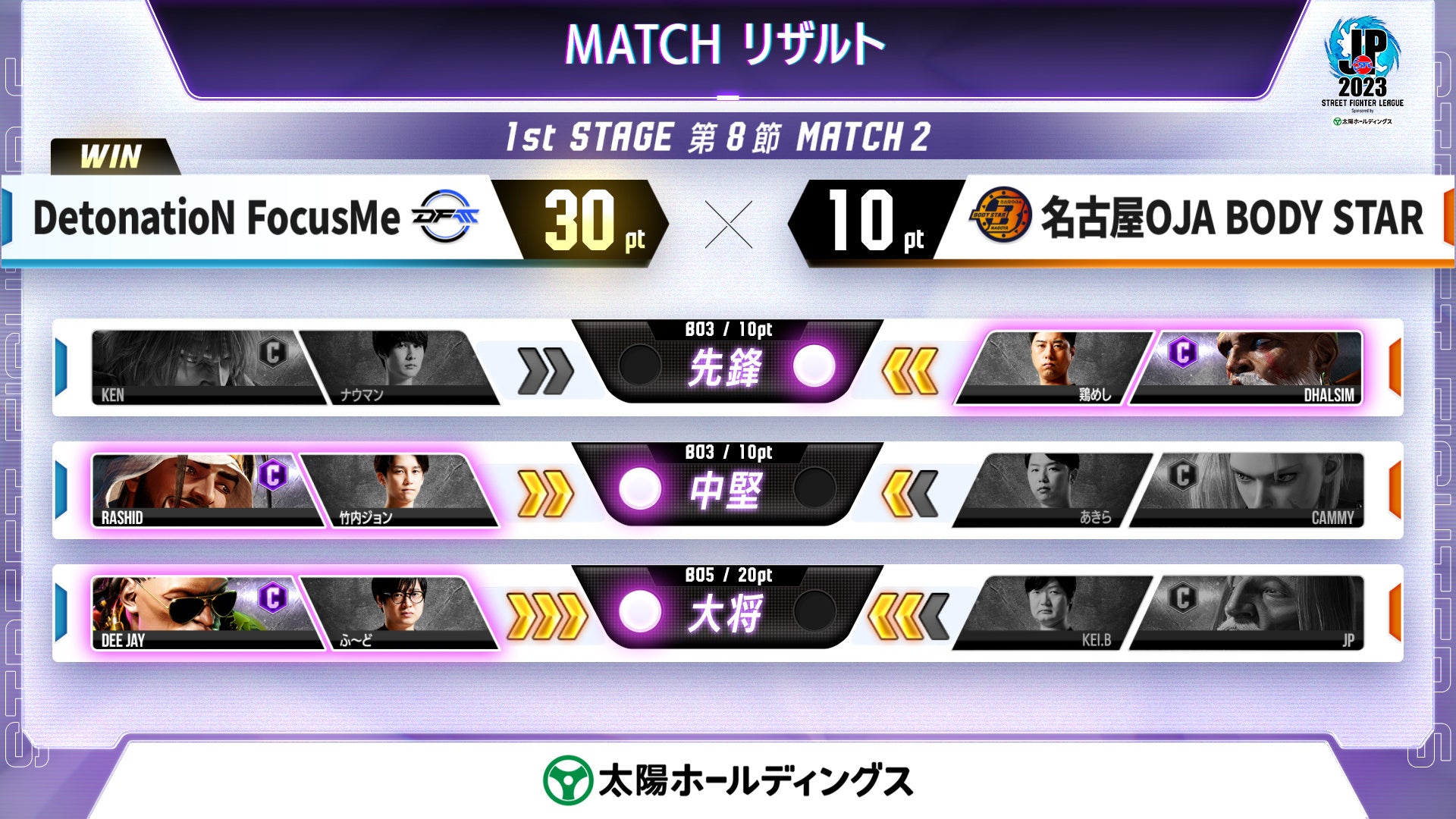 • DetonatioN FocusMeが【名古屋OJA BODY STAR】に勝利しました。