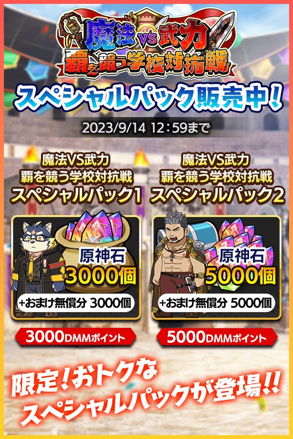 - 期間限定の「魔法VS武力 覇を競う学校対抗戦」ガチャ登場
