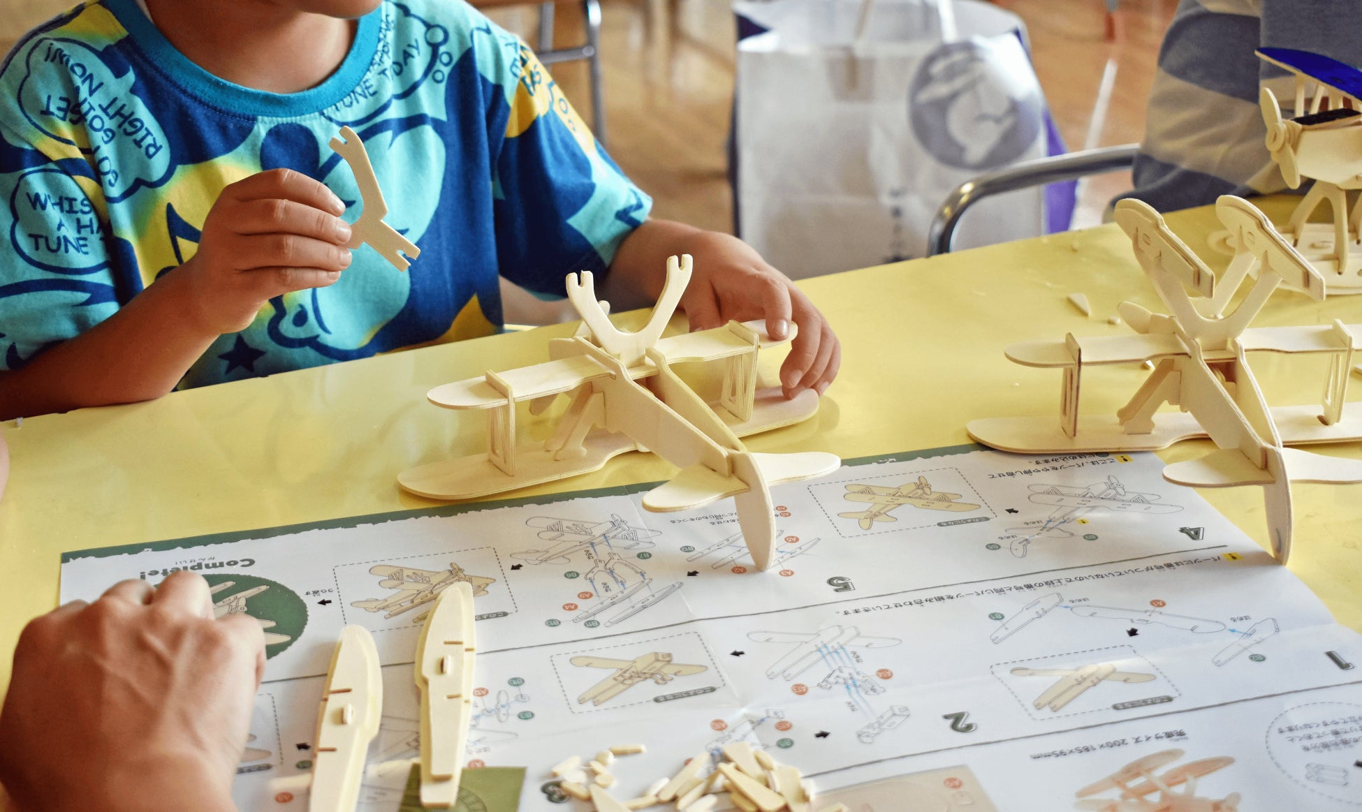 - 子どもたちはDIYキットブランド『つくるんです』の3Dウッドパズルに取り組む