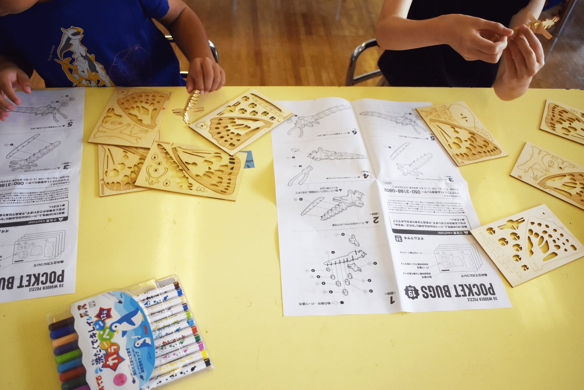参加者は年長から小学生の子どもたちで、5種類の3Dウッドパズルを選んで取り組みました。