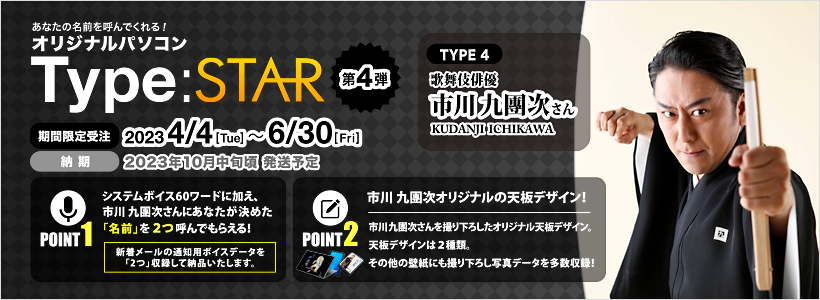 声優パソコン「Type:YOU」のスマッシュコアから【Type:STAR (タイプスター) 】が登場! 第4弾は歌舞伎俳優の市川九團次さん! 4月4日正午より特設サイトで受注開始!