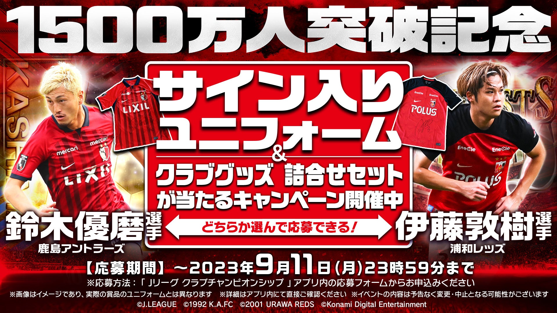 『Jリーグクラブチャンピオンシップ』の登録会員数1500万人突破を記念したキャンペーンをぜひお楽しみください。